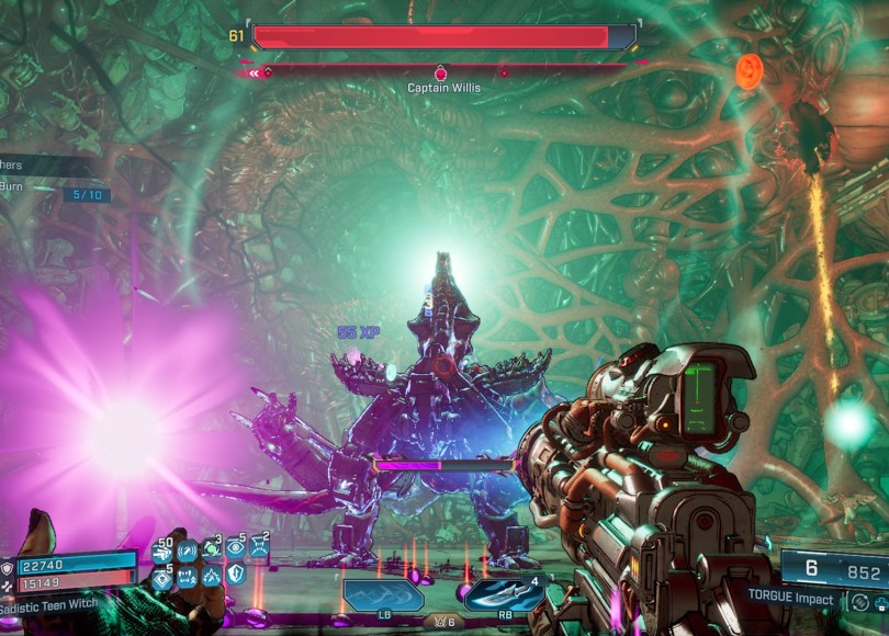 I think my biggest real critiques of the DLC’s story fall on the megalith and the Vault of the Damned. I played the entire DLC. In fact, I have 100% completion for it. I don’t actually know what the megalith is. I heard online, and then looked it up to confirm, that the megalith first appears in The Pre-Sequel on the Eleseer map, and it totally does. Why it’s suddenly a malicious thing that drives people insane, mutates them, and has bloody tentacles everywhere isn’t ever answered, or if it is I somehow missed it. The Vault of the Damned itself is also never explained either. Don’t get me wrong, it’s a very cool concept and I really enjoy the tone and aesthetics (big Event Horizon vibes), but it doesn’t make a lot of sense when you think about it or compare it to previously established lore and continuity, or at least it doesn’t with the current explanations in the game.